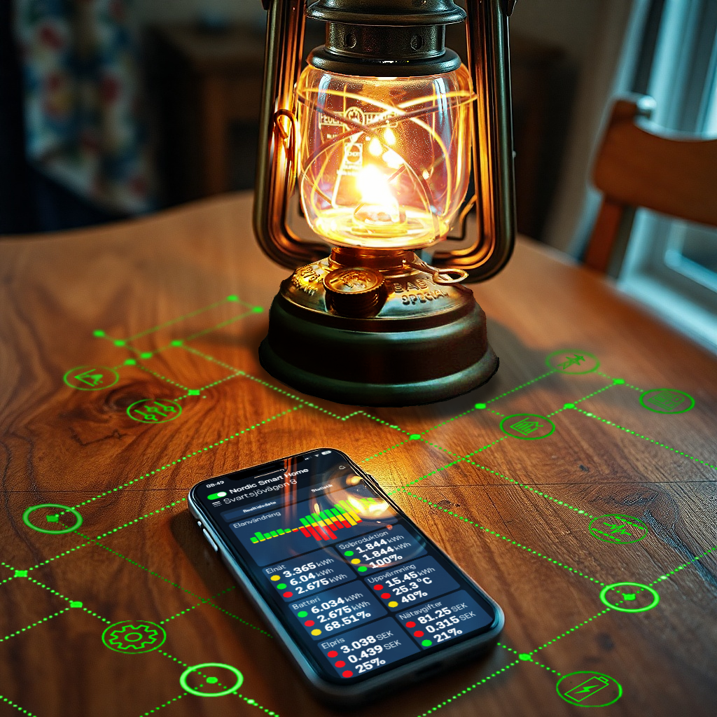 Men i de flesta fall är ett hembatteri det mest pålitliga för långvarig backup. De flesta strömavbrott varar mindre än två timmar, men längre avbrott kan förekomma särskilt i samband med hårda stormar på vintern. Ett hembatteri på 15 kWh med backupfunktion och styrning från Nordic Smart Home kan räcka för 12–24 timmars drift vid normal hushållsförbrukning.