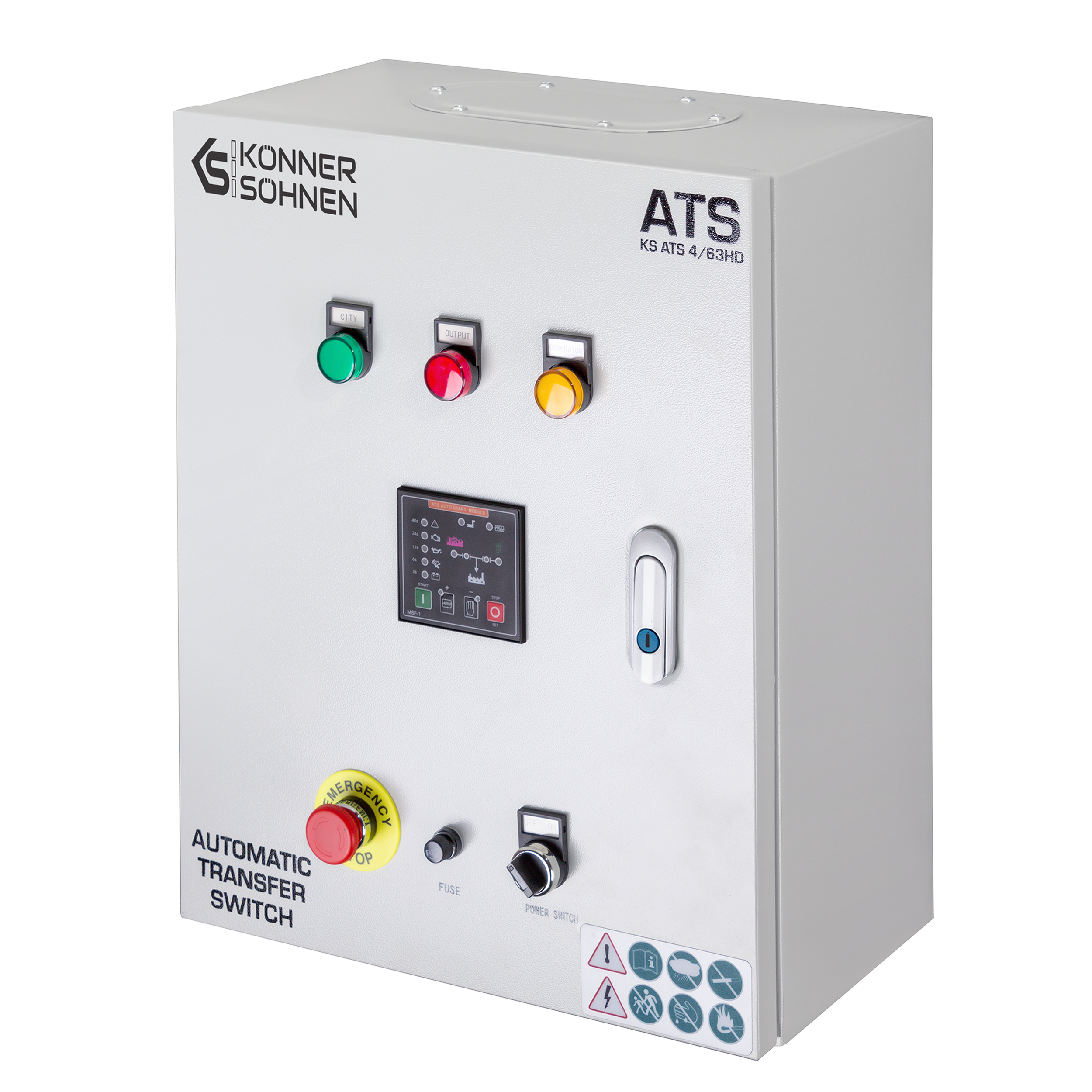K&S ATS nätfrånskiljare är anpassad för K&S invertergeneratorerna och gör övergåneng samt återgången vid ett strömavbrott till en helt automatisk process.